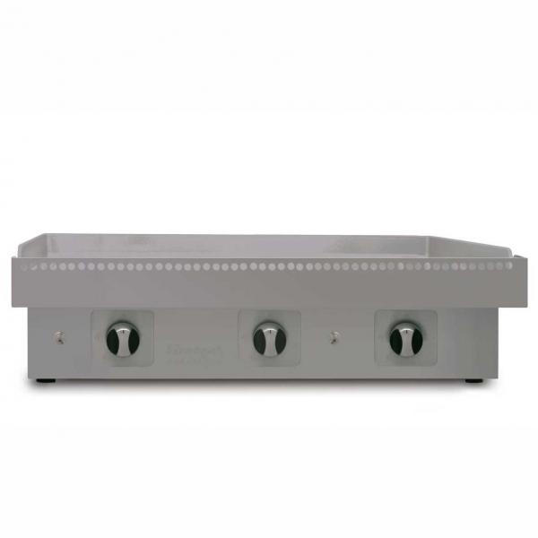 Cette plancha est donc destinée à des utilisateurs trés particuliers. Mais si vous en faite partie alors attendez-vous à utiliser une plaque de cuisson phénoménale. Les 18 mm d'acier carbone traité au chrome et les 15000 Watts développés par les 4 bruleurs indépendants autorisent cette plaque à cuire tout ce que vous pouvez lui proposer sans broncher. Dans une utilisation pro / semi-pro, elle est capable d'enchainer 2 ou 3 heures de coup de feu, même avec du surgelé, sans jamais avoir besoin de temps d'attente pour baisse de température. La cuisson est simplement parfaite car les aliments sont saisis instantanement lors du premier contact avec la plaque. L'énergie emmagasinée permet limiter la chute de température en surface de la plaque et surtout de la remonter quasi instantanement.